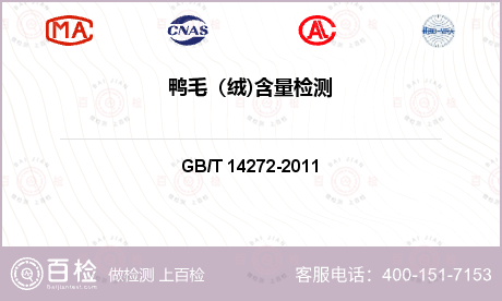 百檢網(wǎng)匯集眾多CNAS、CMA、CAL等資質(zhì)的檢測機(jī)構(gòu)遍布全國,可為您提供鴨毛(絨)含量測試服務(wù),實(shí)驗(yàn)室就近分配。具體請咨詢在線客服。