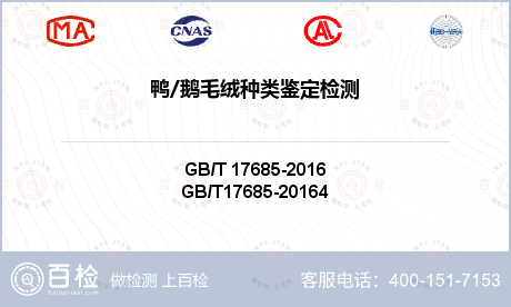 百檢網(wǎng)匯集眾多CNAS、CMA、CAL等資質(zhì)的檢測(cè)機(jī)構(gòu)遍布全國,可為您提供鴨/鵝毛絨種類鑒定測(cè)試服務(wù),實(shí)驗(yàn)室就近分配。具體請(qǐng)咨詢?cè)诰€客服。