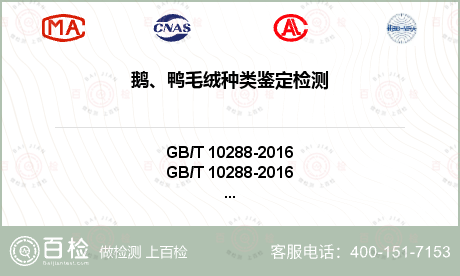 百檢網(wǎng)匯集眾多CNAS、CMA、CAL等資質(zhì)的檢測(cè)機(jī)構(gòu)遍布全國(guó),可為您提供鵝、鴨毛絨種類鑒定測(cè)試服務(wù),實(shí)驗(yàn)室就近分配。具體請(qǐng)咨詢?cè)诰€客服。