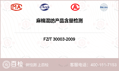 百檢網(wǎng)匯集眾多CNAS、CMA、CAL等資質(zhì)的檢測機(jī)構(gòu)遍布全國,可為您提供麻棉混紡產(chǎn)品含量測試服務(wù),實(shí)驗(yàn)室就近分配。具體請咨詢在線客服。