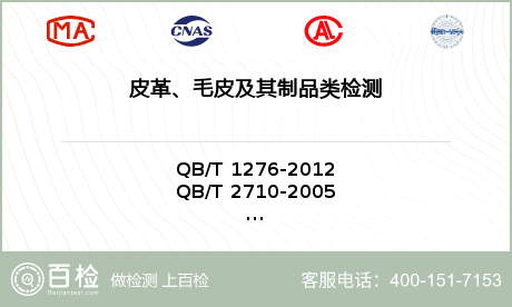 | 7 | 毛皮 化學(xué)試驗(yàn) 四氯化碳萃取物的測(cè)定 QB/T 1276-2012 | 皮革、毛皮及其制品類 | 四氯化碳萃取物含量 |