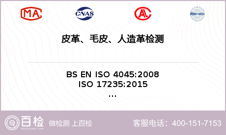 | 1 | 皮革 化學(xué)試驗(yàn) pH值的測定 BS EN ISO 4045:2008 | 皮革、毛皮、人造革 | pH值 |