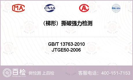 溫馨提示:以上關于《(梯形)撕破強力測試》內(nèi)容僅為部分列舉供參考使用,百檢網(wǎng)匯集眾多CNAS、CMA、CAL等資質的檢測機構遍布全國,更多檢測需求請咨詢客服。