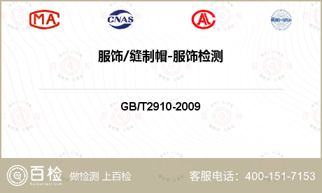 | 1 | 紡織品 定量化學(xué)分析GB/T2910-2009(所有部分) | 服飾/縫制帽 | 纖維含量 |