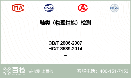溫馨提示:以上關(guān)于《鞋類(物理性能)檢測》內(nèi)容僅為部分列舉供參考使用,百檢網(wǎng)匯集眾多CNAS、CMA、CAL等資質(zhì)的檢測機(jī)構(gòu)遍布全國,更多檢測需求請咨詢客服。