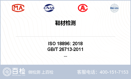 溫馨提示:以上關(guān)于《鞋材檢測》內(nèi)容僅為部分列舉供參考使用,百檢網(wǎng)匯集眾多CNAS、CMA、CAL等資質(zhì)的檢測機構(gòu)遍布全國,更多檢測需求請咨詢客服。